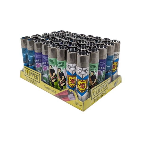 - 40 Lighters per pack - Clipper Large Refillable Lighters- 4 Assorted Designs- Preset Flame - Gas Lighter